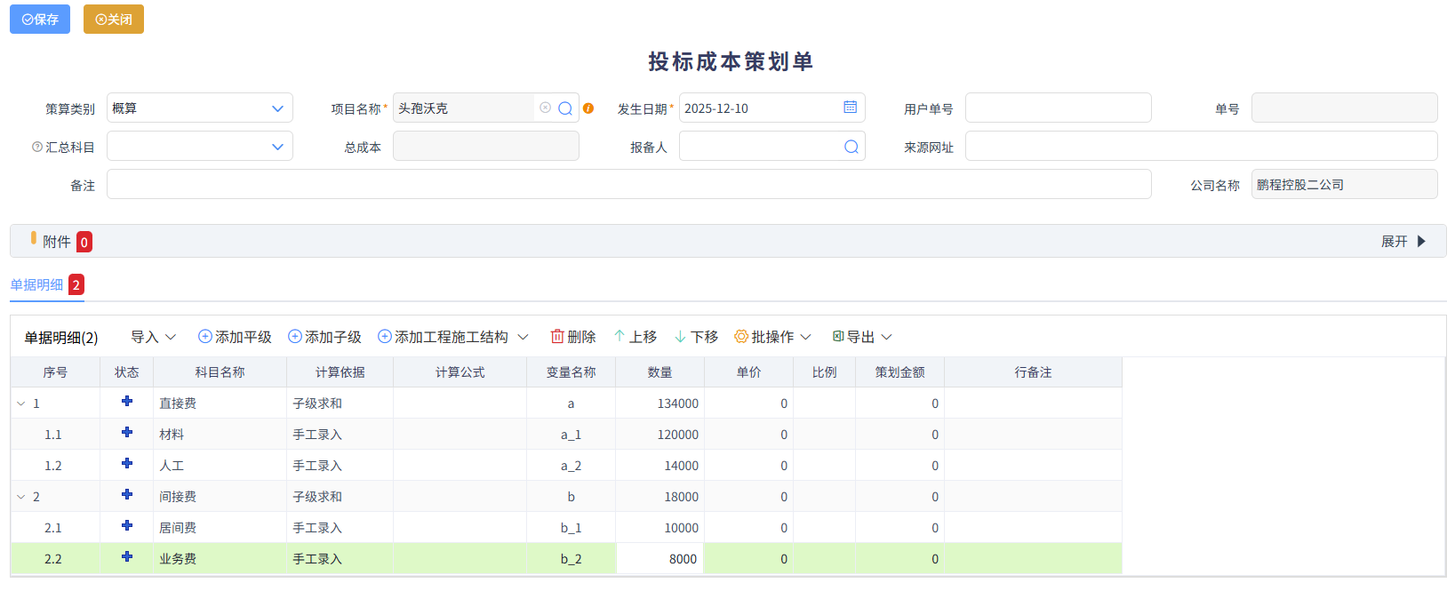 投標(biāo)策劃分估算和概算兩種。估算沒有可關(guān)聯(lián)的項(xiàng)目名稱,即沒有確切的項(xiàng)目名稱,需要手動輸入;概算是可以關(guān)聯(lián)投標(biāo)階段的項(xiàng)目名稱的。如下圖所示