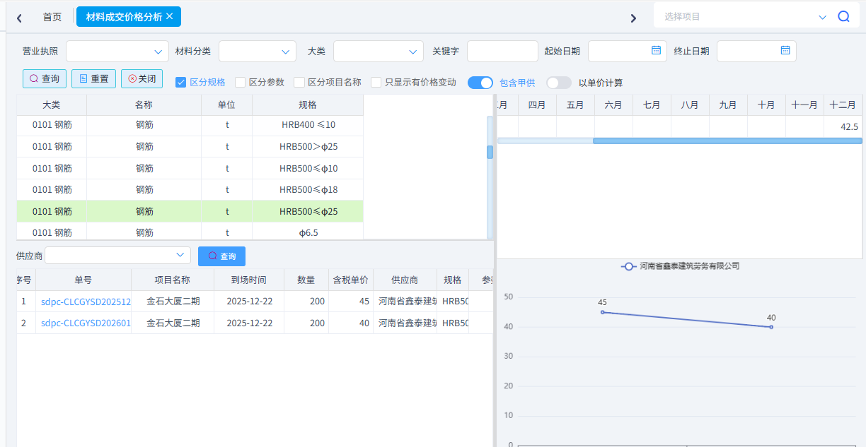 財筑云工程項目管理平臺可以實現(xiàn)施工企業(yè)材料全流程管理,從材料預(yù)算到項目現(xiàn)場用料申請再到采購員詢價比價簽訂合同下采購訂單再到供應(yīng)商送貨驗收結(jié)算。還可以管理庫存管理、甲供材業(yè)務(wù)、材料銷售業(yè)務(wù),并提供了豐富的查詢報表,適用于各個崗位人員查詢數(shù)據(jù)。