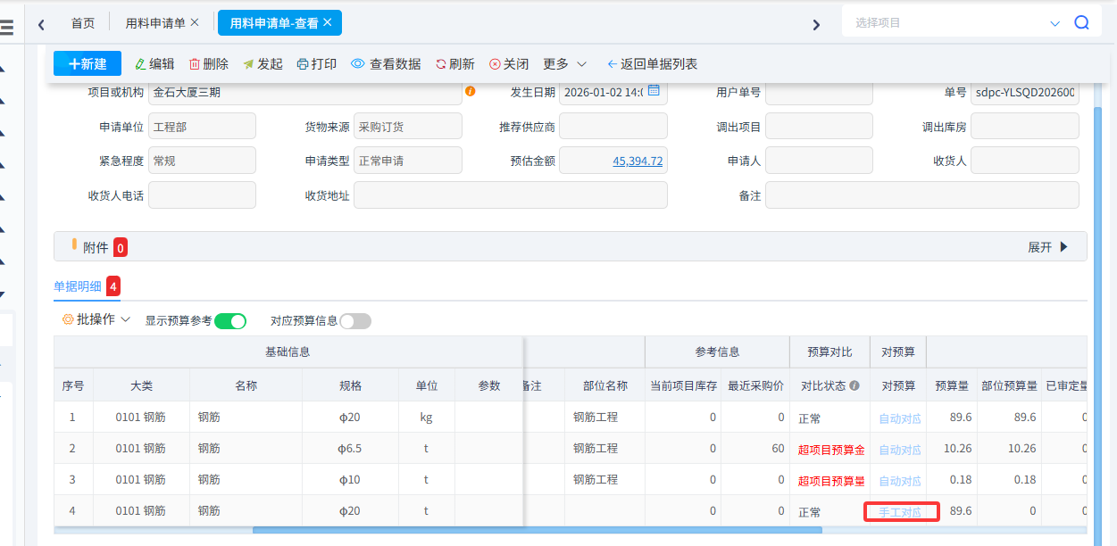 2、預(yù)算手動對應(yīng)后狀態(tài)