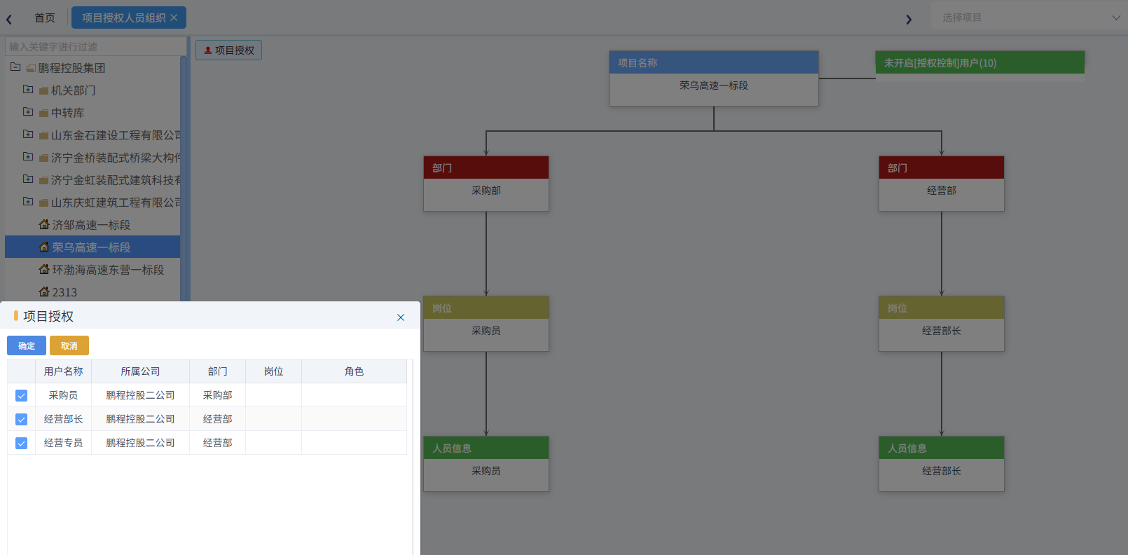 項(xiàng)目授權(quán)人員組織,主要是查看當(dāng)前項(xiàng)目授權(quán)人員的組織架構(gòu),如下圖所示: