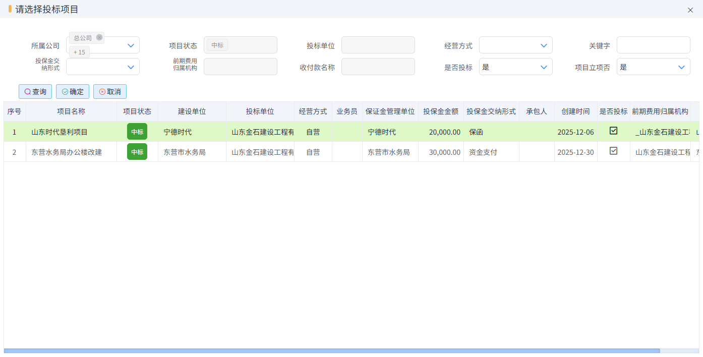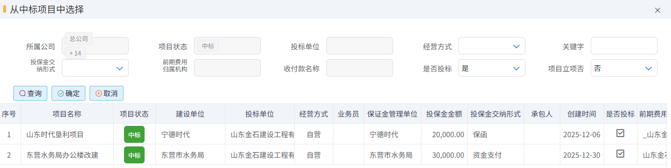 從中標(biāo)項(xiàng)目中選擇,會(huì)彈出中標(biāo)項(xiàng)目選擇框,如下圖所示: