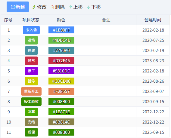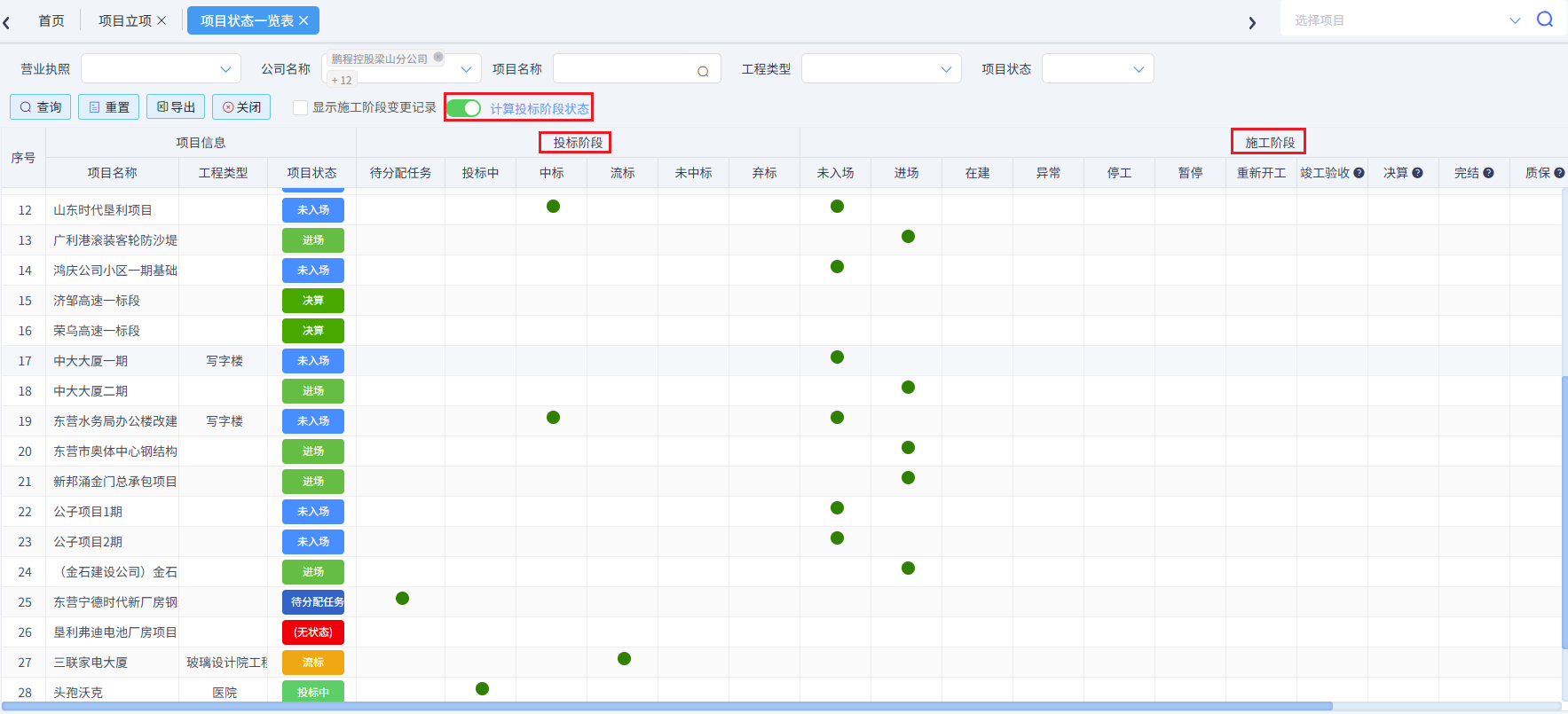 此表展示所有項(xiàng)目的狀態(tài),包括投標(biāo)階段和施工階段,如下圖所示: