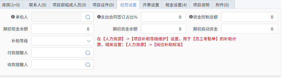 根據(jù)項(xiàng)目的具體情況,輸入或選擇,如期初現(xiàn)金余額為項(xiàng)目開賬時(shí)的現(xiàn)金余額;期初資金余額為項(xiàng)目開賬時(shí)在公司賬上的資金余額;期初啟動(dòng)資金為項(xiàng)目開賬時(shí)公司給該項(xiàng)目設(shè)定的可用資金余額。