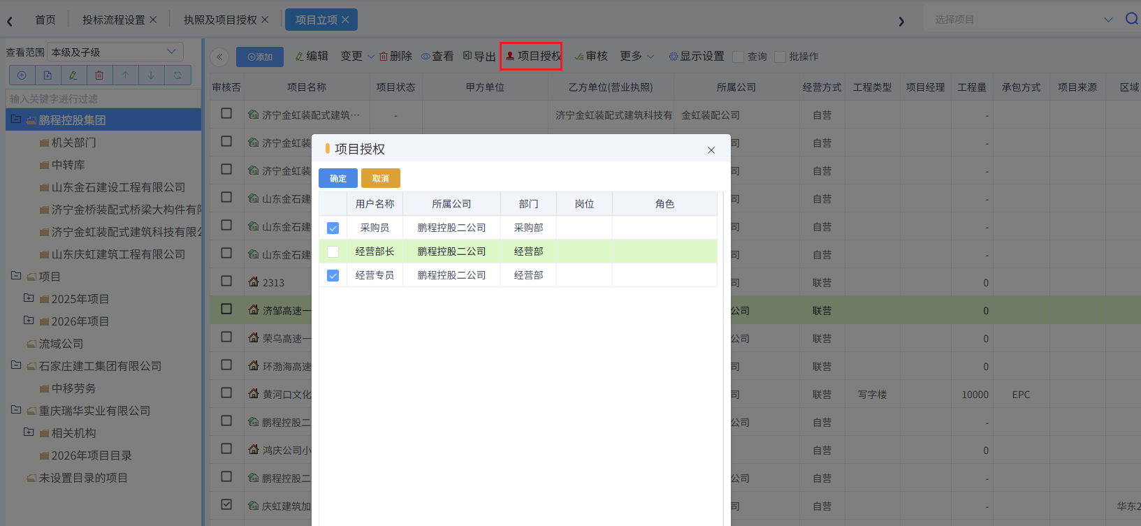 也可以在此界面做項(xiàng)目授權(quán),如下圖所示:
