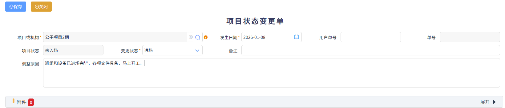 若發(fā)生項(xiàng)目的狀態(tài)變更,用項(xiàng)目狀態(tài)變更單,如下圖所示: