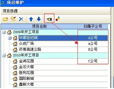 (4)規(guī)屬于總公司的用戶可以查看或操作【項目維護】中所有項目。規(guī)屬于子公司的用戶只可以使用【項目維護】中被其子公司授權(quán)的項目。