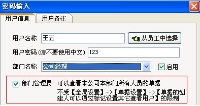 【部門管理員】可以查看本部門所有人員的單據(jù)、不受【單據(jù)的創(chuàng)建人可通過標記來設(shè)置其它查看用戶】的限制。