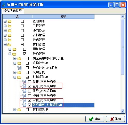 用戶:張明 權(quán)限如下:
