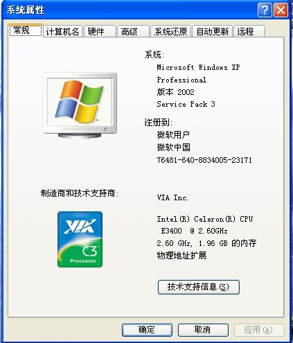 上圖所示32位xp系統(tǒng),一般xp系統(tǒng)都為32位。