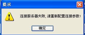 故障一、新裝客戶端無法訪問服務(wù)器,彈出錯(cuò)誤提示:“連接服務(wù)器失敗,請(qǐng)重新配置連接參數(shù)”:如下圖: