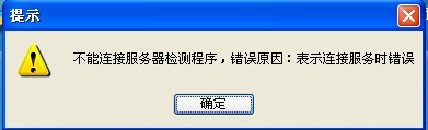 故障四、客戶端無法訪問,彈出錯(cuò)誤提示:“不能連接服務(wù)器檢測(cè)程序,錯(cuò)誤原因:表示連接服務(wù)器是錯(cuò)誤”如下圖: