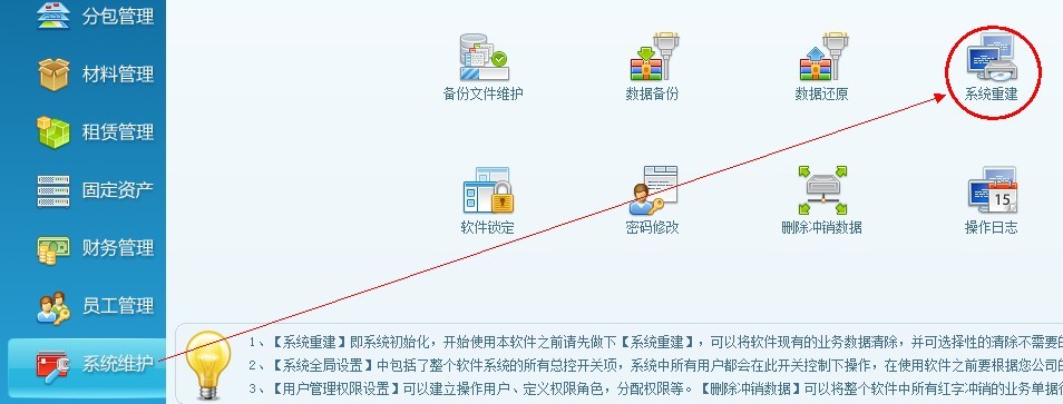系統(tǒng)重建一般是在軟件正式使用前,清除以前測(cè)試數(shù)據(jù)庫時(shí)使用。