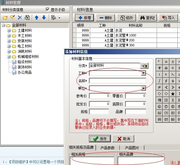 首先注意的是,不要把固定設(shè)備期初統(tǒng)計(jì)、材料庫(kù)存統(tǒng)計(jì)與基礎(chǔ)信息中設(shè)備維護(hù)、材料維護(hù)混淆。其中設(shè)備維護(hù)和材料維護(hù)記錄的是設(shè)備、材料的名稱、規(guī)格、品牌、所屬工種、分類等基本信息。如下圖: