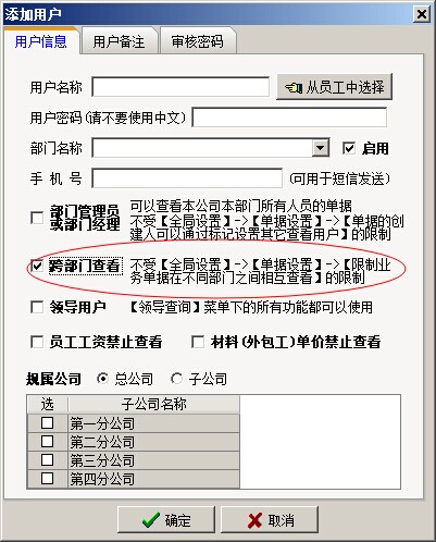 如果,【限制業(yè)務單據在不同部門的相互查看】這個開關開啟,那么與單據創(chuàng)人部門不同的用戶(多級審核單據中審核人不受限),就是無法看到該業(yè)務單據。判斷是否與單據創(chuàng)建人部門相同,是看用戶列表中的部門項。如下圖: