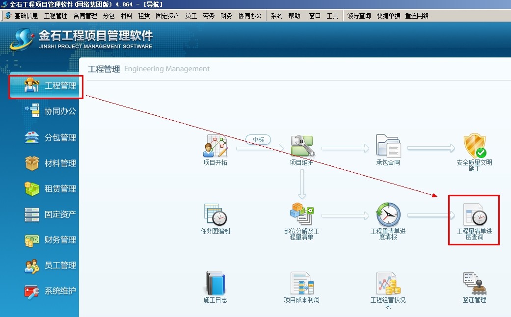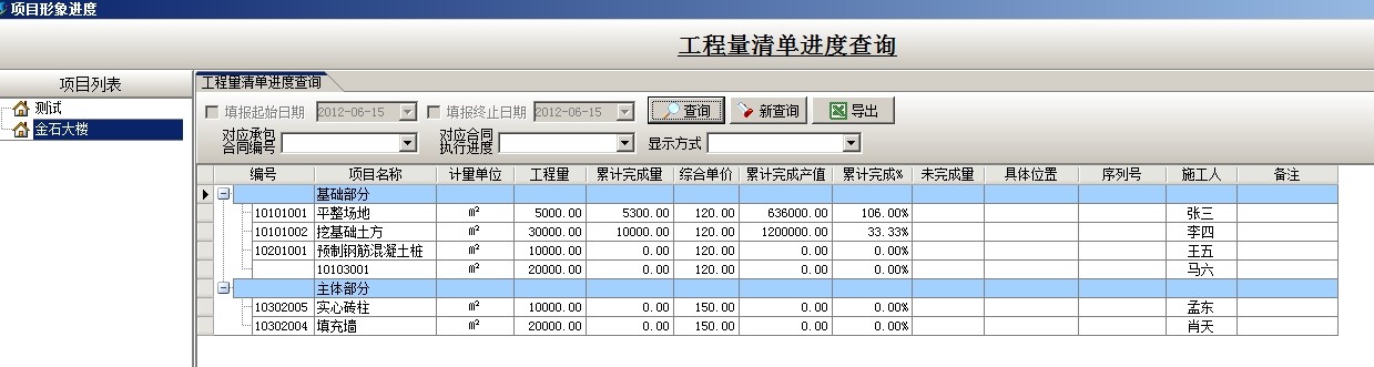 選中相應(yīng)的項目,點查詢,查看工程量清單進度
