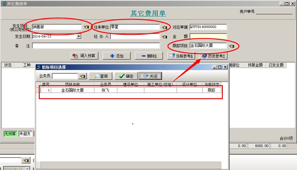 2、投標(biāo)之前發(fā)生的費(fèi)用,可以錄入【其它費(fèi)用單】。